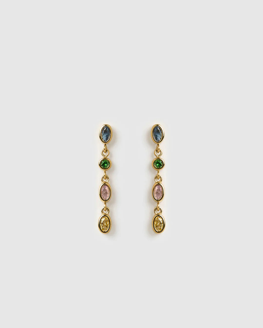 Sparkle and shine in the stunning Isadora Earrings. Featuring a golden colourful stone drop, this luxurious pair brings a touch of regal glamour to any look.