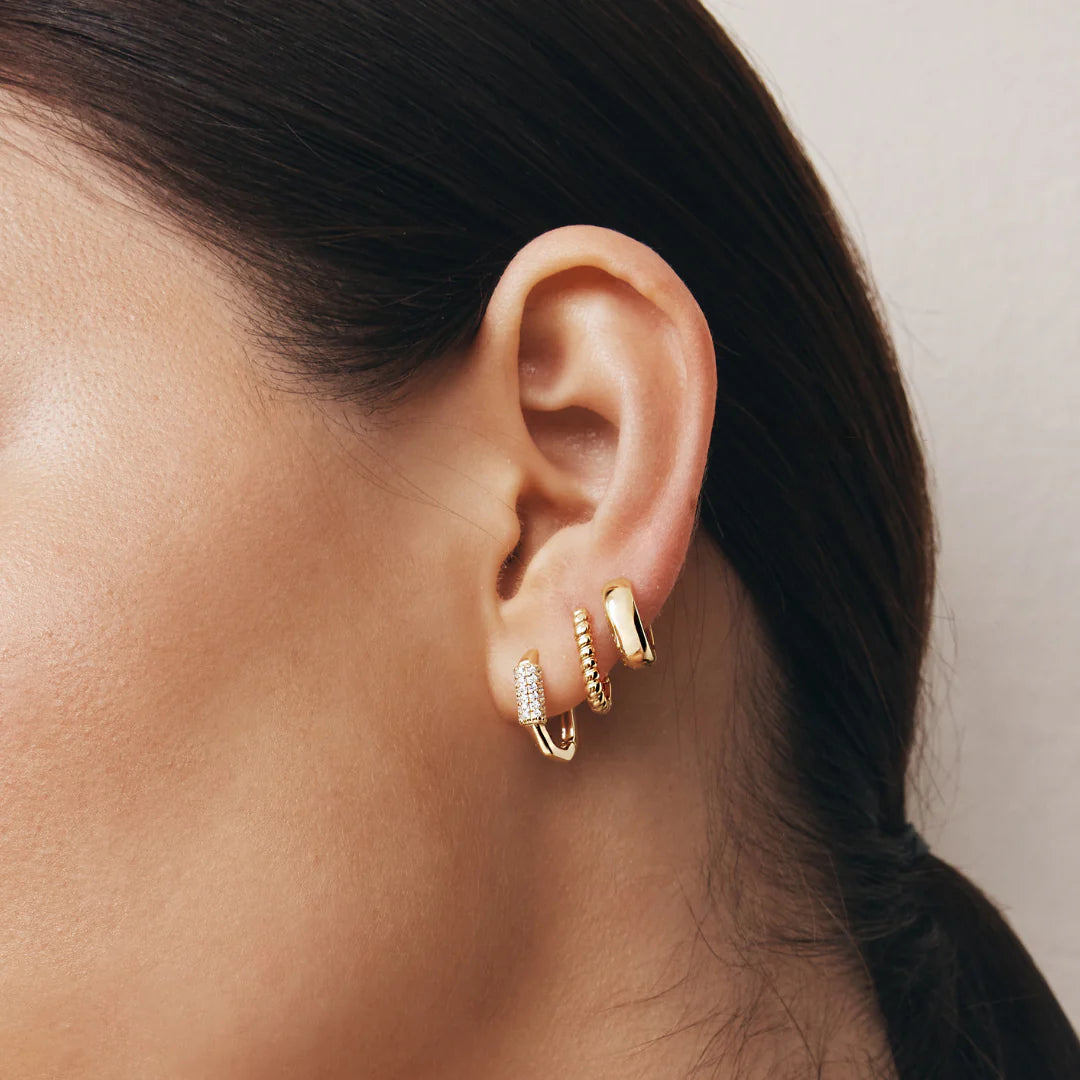 The perfect gold huggie with just a touch of sparkle. Made of sterling silver.
