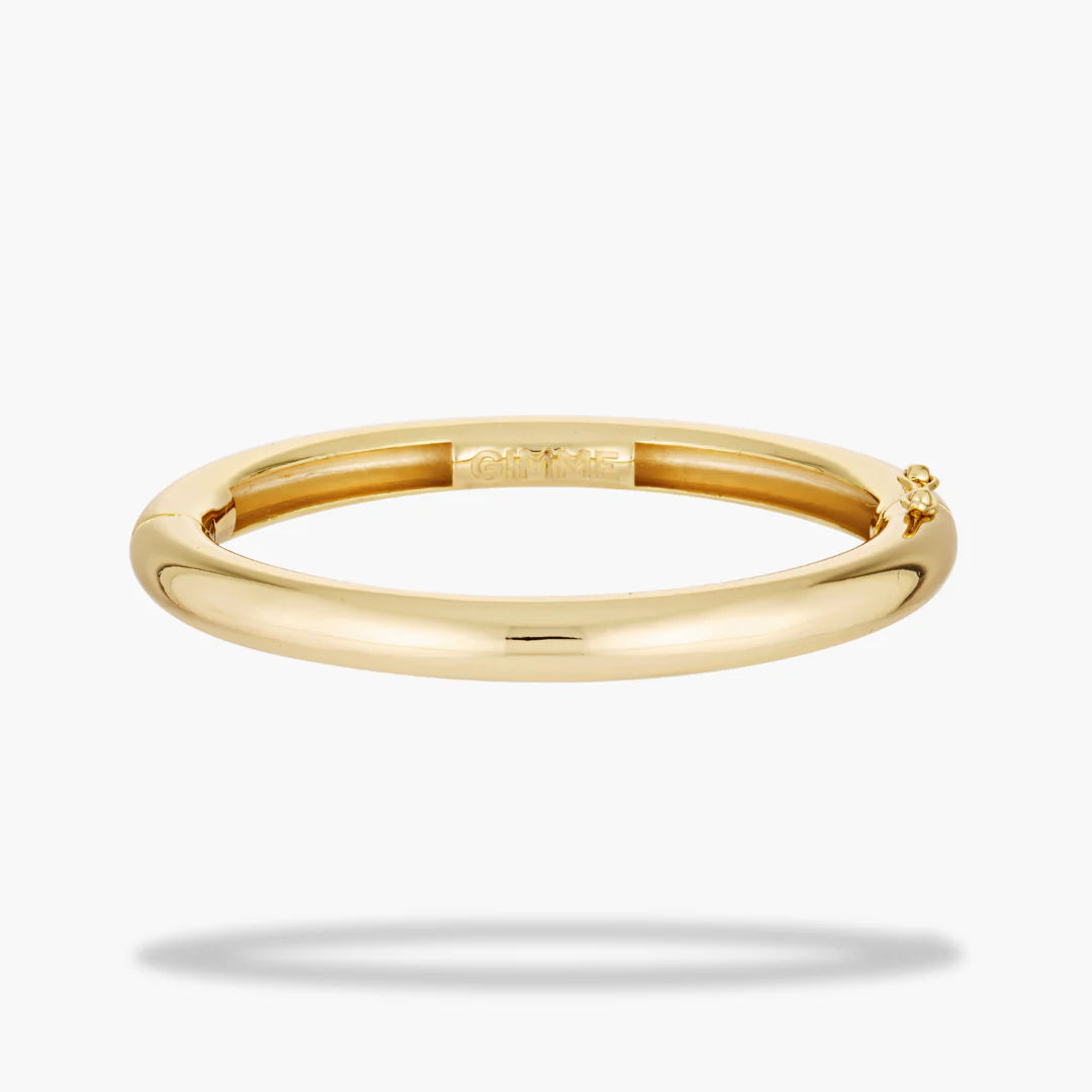 A smooth gold bangle with a sleek, sculptural finish that instantly elevates your wrist stack and adds that polished, effortless feel.