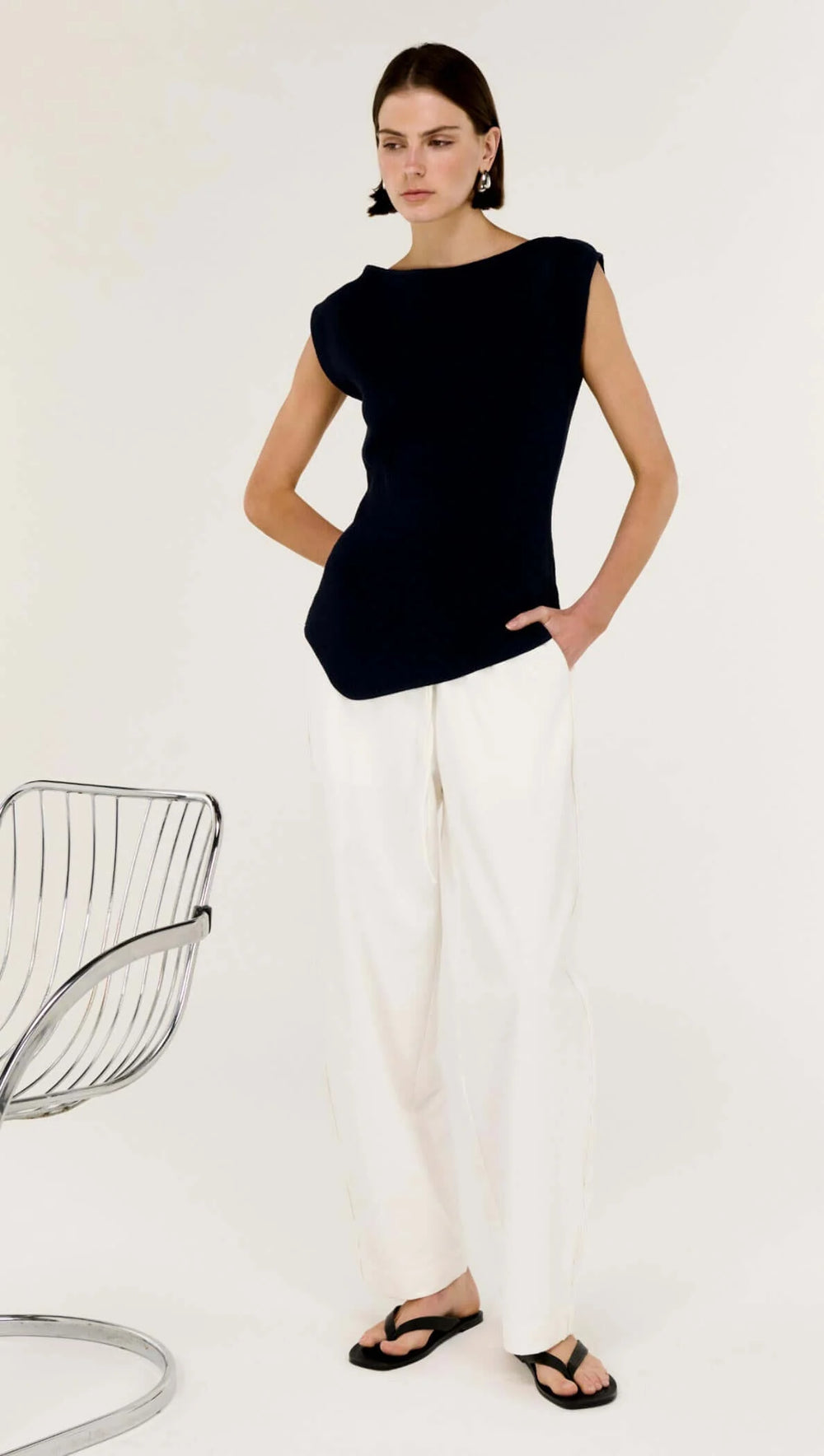 Cassian Assym Knit Top - Navy